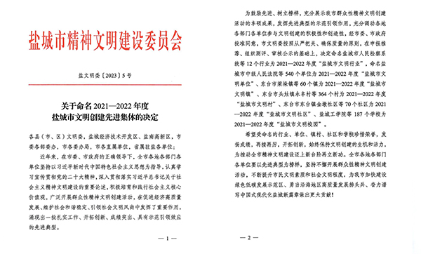 • 喜報!海興集團榮獲“鹽城市文明單位”稱號